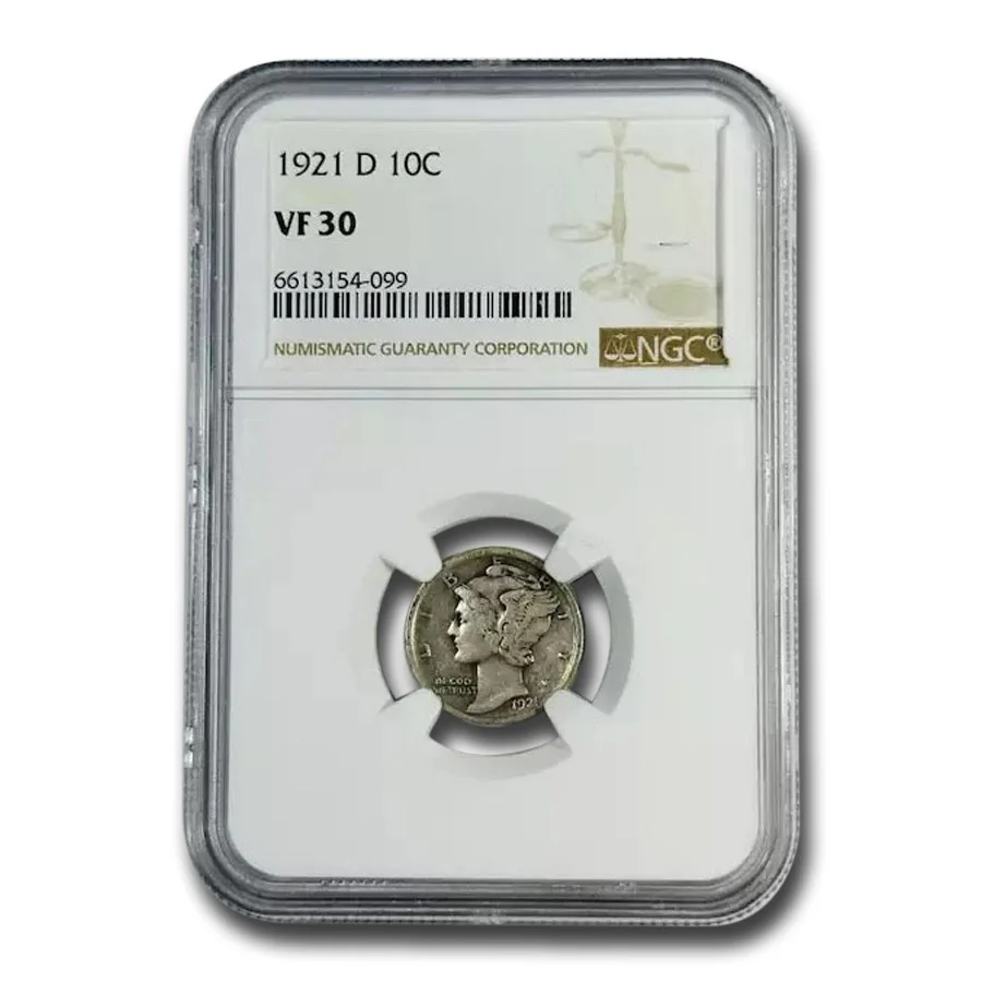 Add this 1921-D Mercury Dime graded VF-30 by NGC to your cart today!